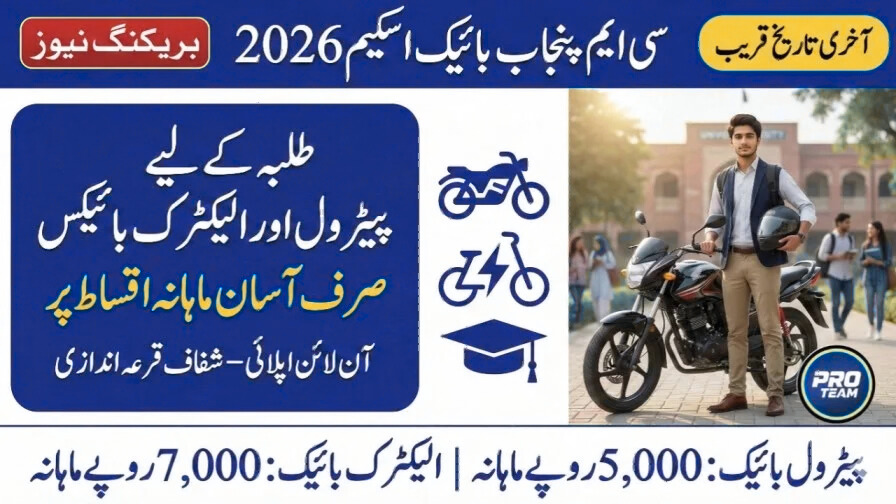 سی ایم پنجاب ای بائیک اسکیم 2026 – مکمل آن لائن رجسٹریشن اور آسان اقساط کی تفصیل